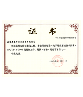 - 蘭德華公司被列為《電子巡查國家行業(yè)標準》起草單位,公司主創(chuàng)人員王兵、張韶虞作為專家起草人之一